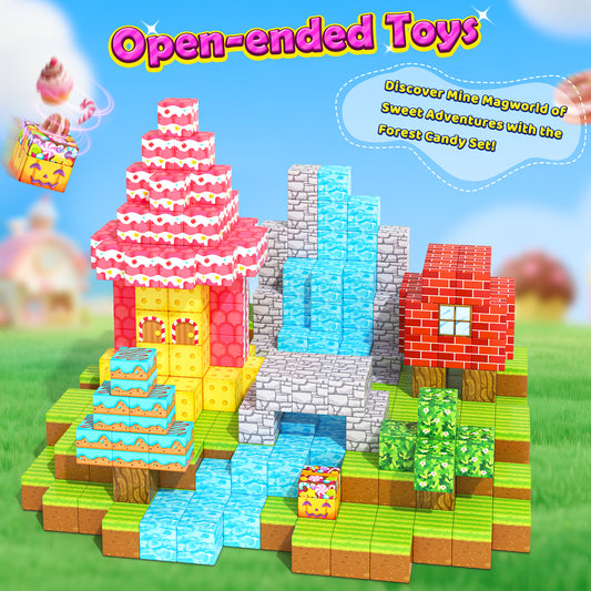 200PCS Magnetic Blocks-Build Mine Magnet World Forest Candy Set Magnetic Tiles Cubes Toddler Kids Games Toys, Building Blocks Learning Outdoor Toys for 3 4 5 6 7 8 Years Old Boys & Girls