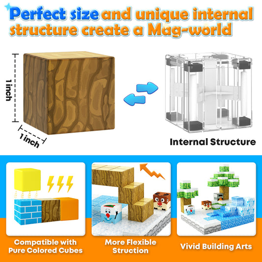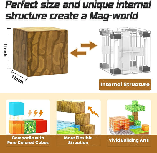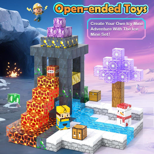 126PCS Large Magnetic Blocks-Mine Magnet World Forest & Ice Edition, Sensory Building Blocks Set STEM Construction Toys for Toddlers Kids Ages 3-5 5-7 8-13, Gifts for 3-8 Year Old Boys Girls