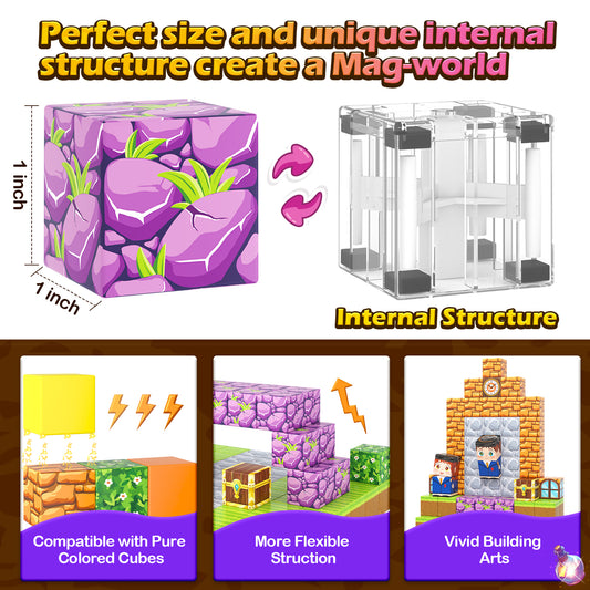 100PCS Magnetic Blocks-Build Mine Magnet World Magic School Edition, Magnetic Kids Building Toys for Toddler Kids Ages 3-5 4-8 6-8, Birthday Gifts for 3+ Boys&Girls