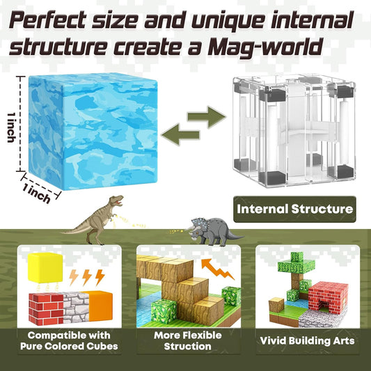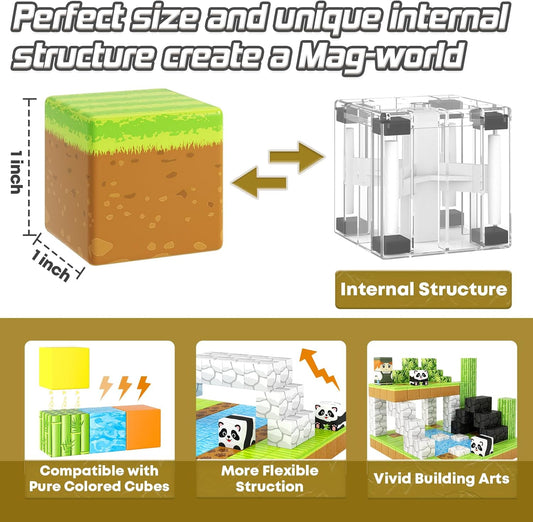 Magnetic Blocks-Build Mine Magnet World Grass Edition, Magnetic Toys for Boys & Girls Age 3-4 4-5 6-8, STEM Montessori Sensory Toys for Toddlers Gifts for 3+ Years Old Girls Boys