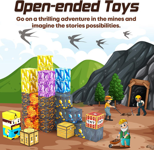 Magnetic Blocks-Build Mine Magnet World Pickaxe Edition Mine Pickaxe Caverns Kids Games Toddler Toys Magnetic Tiles for Boys & Girls Age 3-4 4-5 6-8, Sensory Outdoor Toys for Kids for 3+