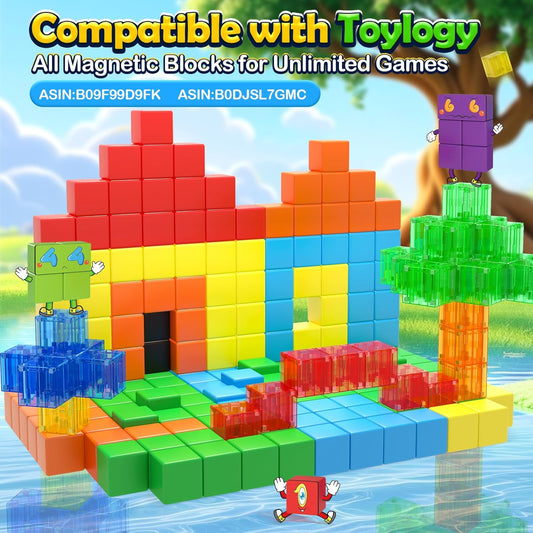 Magnetic Blocks Toy for 3 Year Old Boys & Girls Toddlers Montessori Toys for Kids World Magnet Building Transparent Blocks Educational Learning Kid Toys Age 3-5, 4-8, 5-7