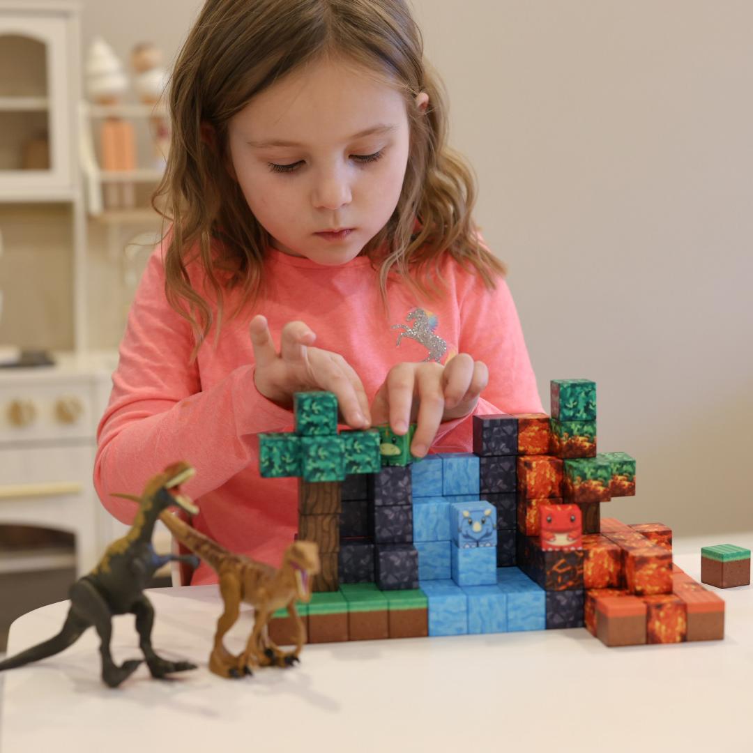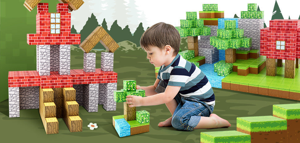 Magnetic Blocks-Build Mine Magnet World Grass Edition, Magnetic Toys for Boys & Girls Age 3-4 4-5 6-8, STEM Montessori Sensory Toys for Toddlers Gifts for 3+ Years Old Girls Boys